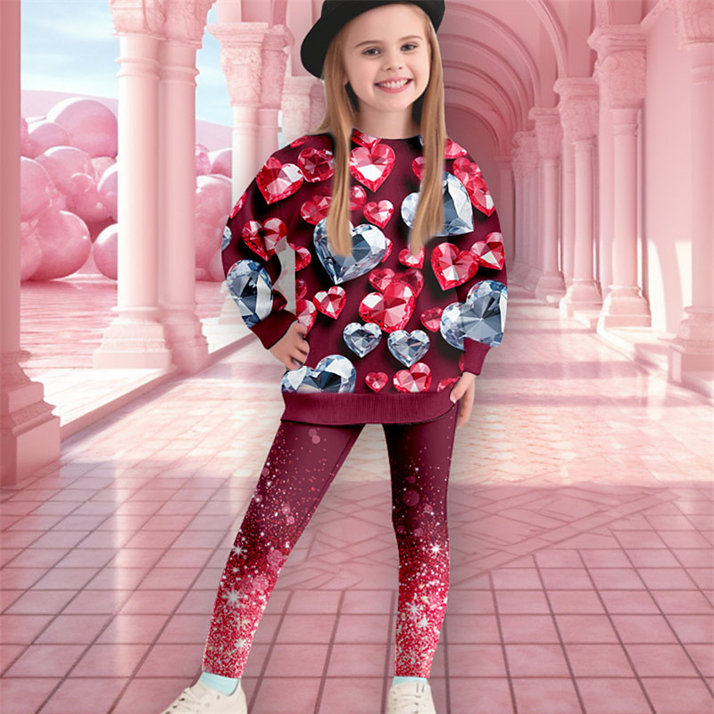 Girls' 3D Heart Sweatshirt Legging Set Set Long Sleeve 3D Print Fall Winter Active Fashion Daily Kids 3-12 Years Crew Neck Outdoor Vacation Date Regular Fit
