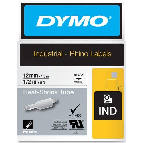DYMO Heißschrumpfschlauch RHINO 18055 Schwarzer Druck auf Weiß 12 mm x 1,5 m