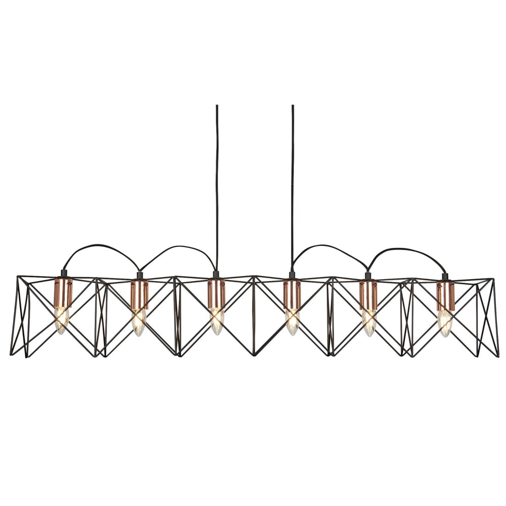Lampadario Industrial-Nordico Acciaio Nero Rame 6 Luci E27