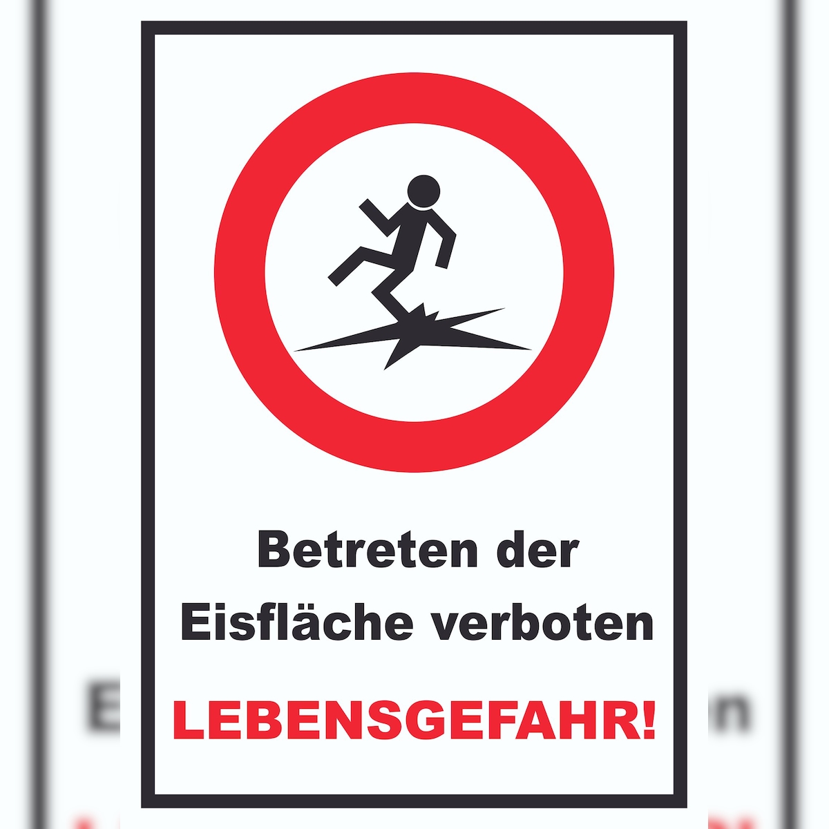Betreten der Eisfläche verboten Lebensgefahr! Schild A5 Rückseite selbstklebend