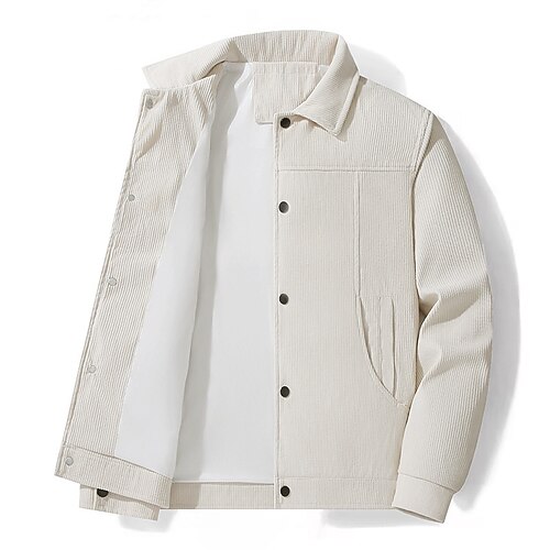 Herren Leichte Jacke Cordjacke Freizeitjacke Urlaub Täglich Warm Tasche Frühling Herbst Einfach Mode Klassisch Revers Regulär Schwarz Khaki Armeegrün Beige Jacken