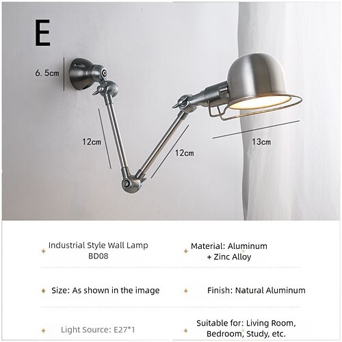 Wandleuchte mit Drehgelenk Antik Finish Spotleuchte Wohnzimmerlampe Nachttischlampe Silber