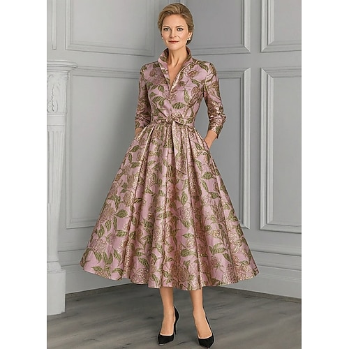 Linea ad A Lunghezza alla caviglia Vestito da Festa Abito da Cocktail Abito da invitata a nozze Abito da cerimonia per signora Manica 3/4 Collo gioiello Elegante Floreale Madre Formale Derby del