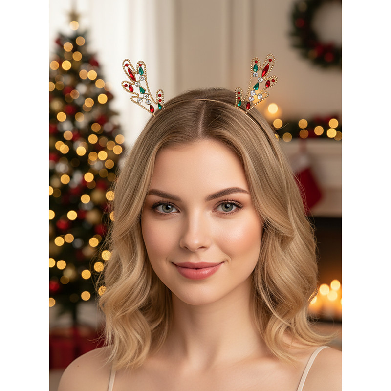Women's Rhinestone Reindeer Antler Headband, Sparkling Christmas Hair Accessory for Holiday Parties Festive Celebrations