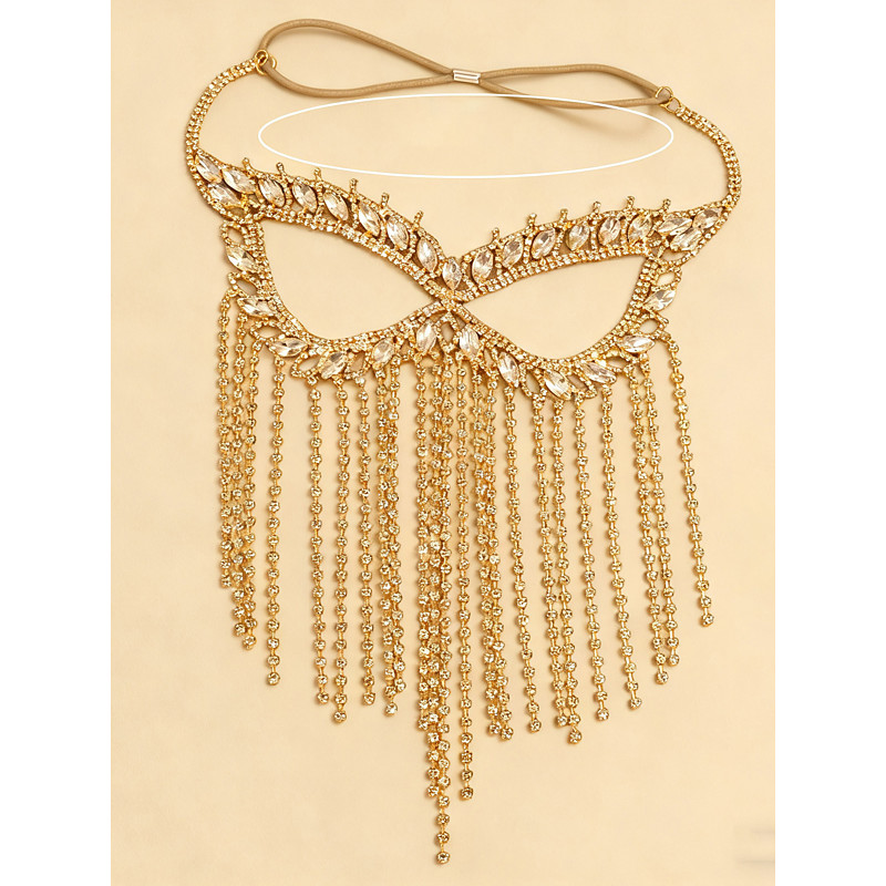 Women's Crystal Rhinestone Fringe Mask Headpiece - Sparkly Face Chain Headdress for Gatsby Party, Stage Performance and Evening Events