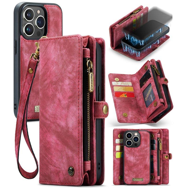 CASEME 008 iPhone 15 Pro Plånboksfodral Konstläder med Avtagbar Röd