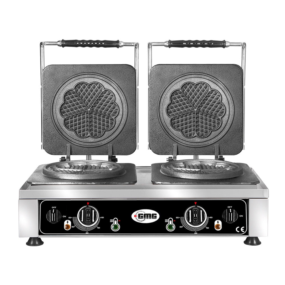 GMG - Waffeleisen Amore-M - 2x Ø 17cm - 50° bis 300°C - Feste Backplatte aus Gusseisen - Umlaufende Fettfangrinne - Gehäuse Edelstahl