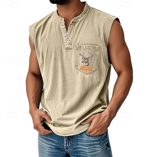 Per uomo Maglietta smanicata Canottiera Maglietta senza maniche Senza Maniche Henley Tutte le stagioni Renna Cervo Moda Designer Tasca Vacanza Streetwear Uscire Nero Rosa Blu marino scuro Maglietta