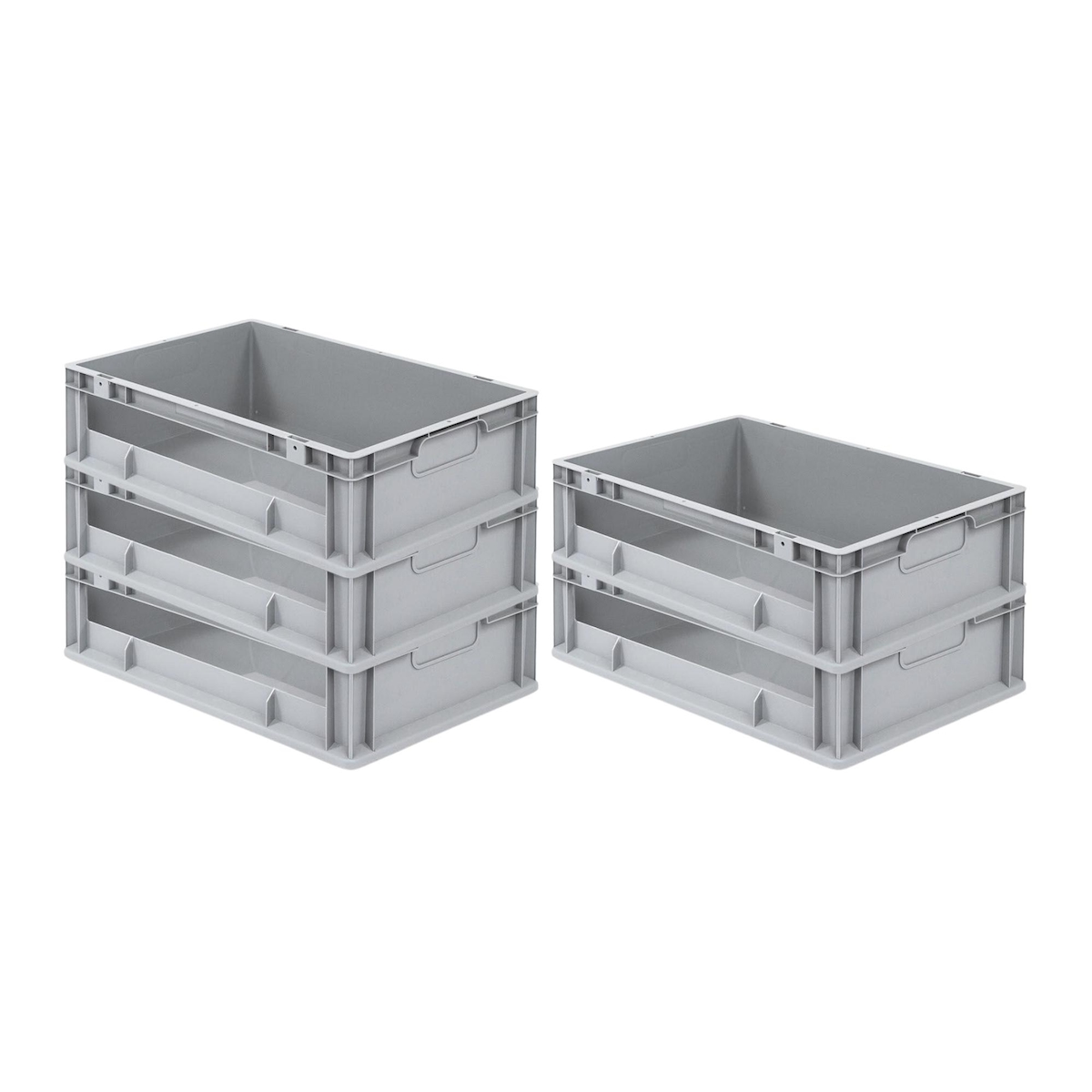 PROREGAL 4x Eurobehälter mit offenem Griff | HxBxT 22x40x60cm | 38 Liter | Grau | Eurobox, Transportbox, Transportbehälter, Stapelbehälter