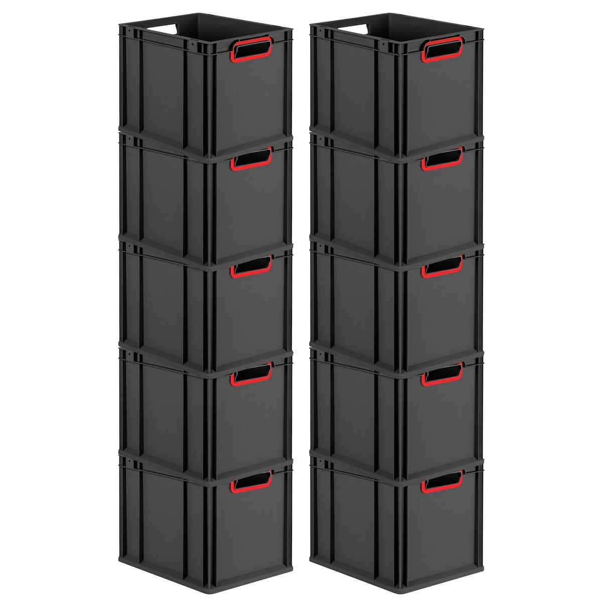 PROREGAL SuperSparSet 5x Eurobox NextGen Color, HxBxT 17x40x60cm, 34 Liter, Griffe rot offen, Schwarz, Eurobehälter, Transportbehälter