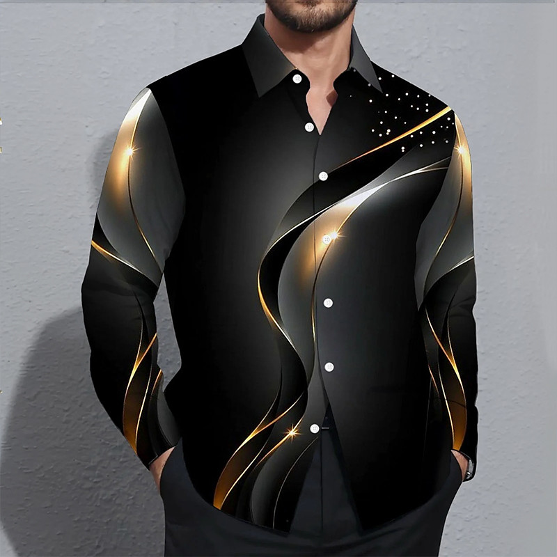 Men's Geometric Gradient Waves Shirt Button Up Shirt Casual Dress Shirt Long Sleeve Fashion Casual Vacation Daily Streetwear Summer Spring Turndown 3D Print Collared Shirts Black Blue Gold Dark Gray