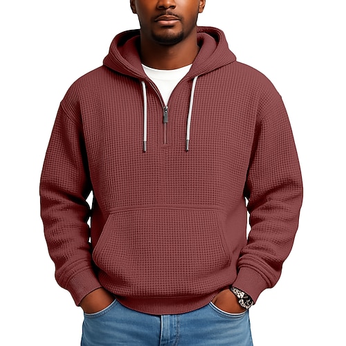 Per uomo Felpa con cappuccio Felpa con cappuccio a nido d'ape Felpa con cappuccio e zip corta Aalbicocca Bianco Verde chiaro Verde militare Rosso Con Cappuccio Semplice Tasca a marsupio Testurizzato