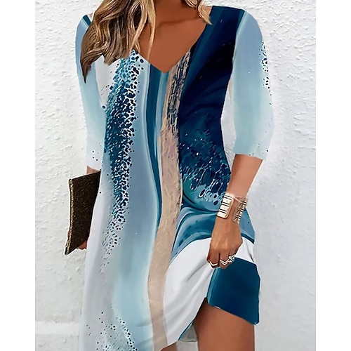Per donna Mini Abito Abito Stampato Moda Moderno Ufficio Uscire Vestibilità regolare Astratto Manica 3/4 Scollo a V Blu Verde acqua Verde Blu scuro Primavera Autunno