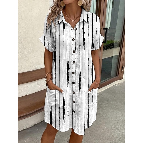 Per donna Mini Abito Abito Camicia Vestito Casual Abito Stampato Moda Moderno Quotidiano Spiaggia Weekend Vestibilità regolare A righe Manica Corta Colletto a Camicia Bianco Estate Primavera Autunno