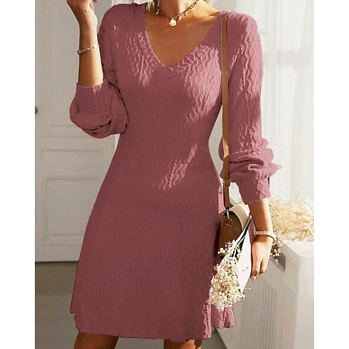 Per donna Mini Abito Vestito Casual Moda Classico Moderno All'aperto Vacanza Ferie Vestibilità regolare Semplice Manica Lunga Scollo a V Nero Rosa Rosso Verde Estate
