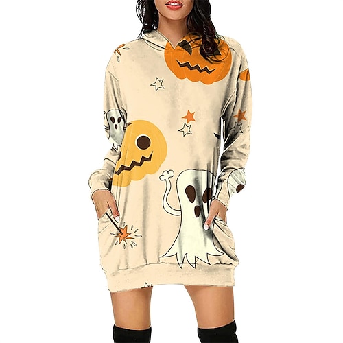 Per donna Mini Abito Abito con Cappuccio Vestito Casual Moda Moderno Halloween Quotidiano Weekend Vestibilità regolare Zucca Manica Lunga Con Cappuccio Giallo Blu Viola Verde Primavera Autunno