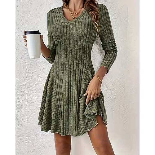 Per donna Mini Abito Abito in maglia Moda Moderno All'aperto Vacanza Ferie Vestibilità regolare Semplice Manica Lunga Scollo a V Nero Giallo Vino Verde scuro Autunno