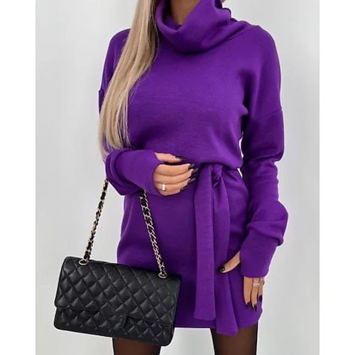 Per donna Abito Midi Abito in maglia Tubino Moda Moderno All'aperto Uscire Vestibilità regolare Semplice Manica Lunga Dolcevita Nero Viola Marrone Cachi Autunno Inverno
