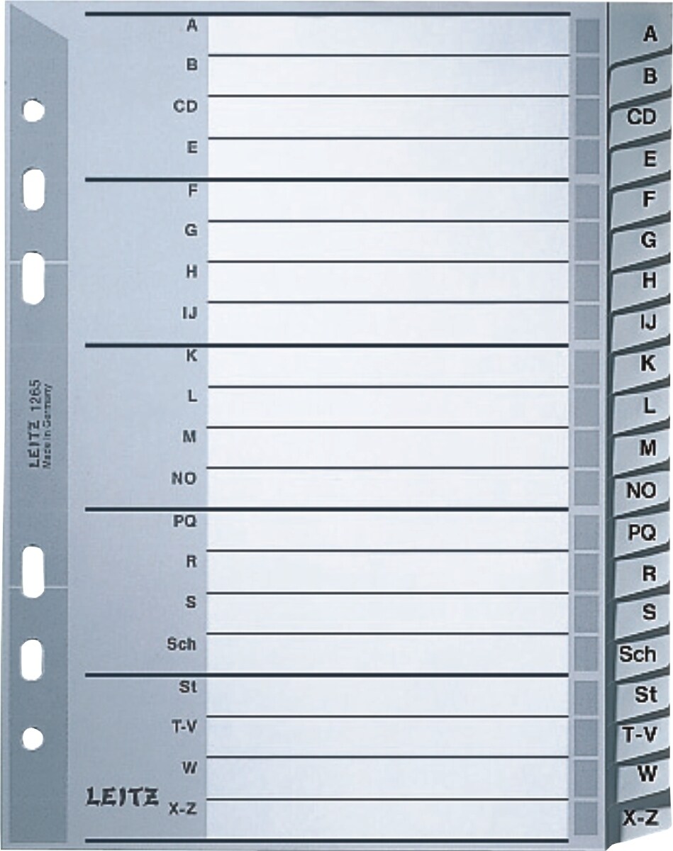 LEITZ Register A5 A-Z PP grau Packung mit 10 Stück
