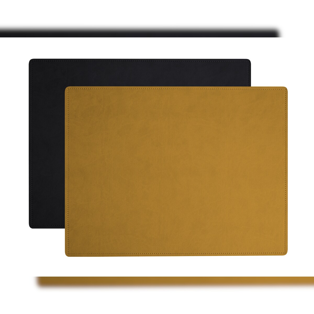 Stil Casa, Set mit 12 zweifarbigen Tischsets, laminiertes und genähtes Polyurethan, 41xh. 31 cm, Dollar-Finish, Farbe Ockergelb/Schwarz.