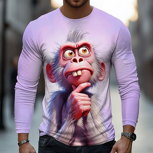 Herren 3D Affe T Shirt Langarm T-Shirt 3D-Druck Rundhalsausschnitt Hemd Mode Basic Straße Lässig Täglich Violett Purpur Sommer Frühling Bekleidung S M L XL XXL XXXL