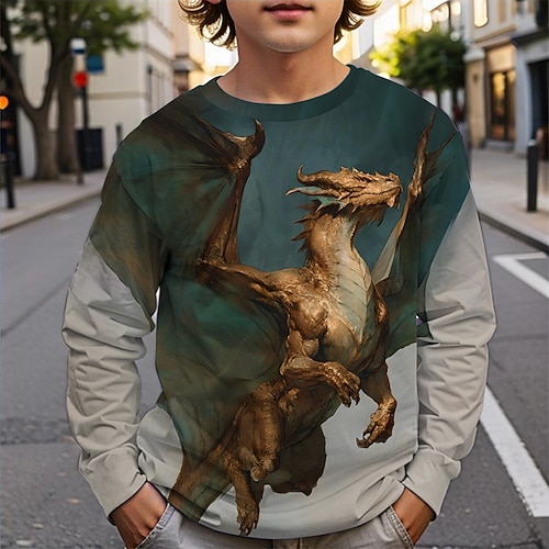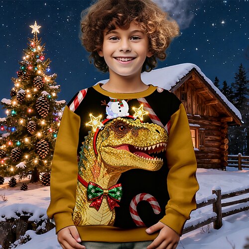 Jungen 3D Dinosaurier Sweatshirt Langarm Frühling Herbst Mode Basic Kinder 4-12 Jahre Rundhalsausschnitt Outdoor Lässig Täglich Normale Passform
