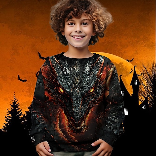 Halloween Jungen 3D Drache Sweatshirt Langarm Frühling Herbst Mode Basic Kinder 4-12 Jahre Rundhalsausschnitt Outdoor Lässig Täglich Normale Passform