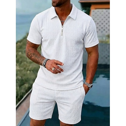 Per uomo Set pantaloncini e T-shirt Maglia da golf Completo da polo Manica Corta Bavero Estate Semplice Moda Essenziale Moderno Jacquard 2 Pezzi Casuale Quotidiano Ferie Blu Nero Bianco Maglietta Top