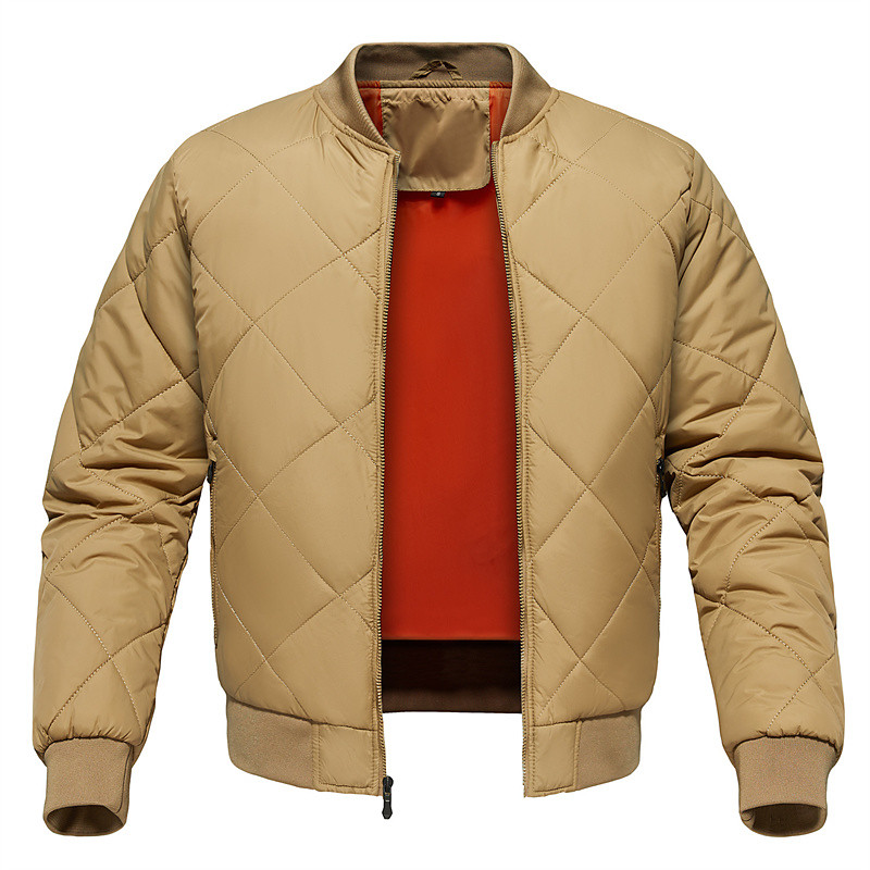 Men's Winter Coat Bomber Jacket Quilted Jacket Parka Pocket Polyster Vacation Daily Wear Date Regular Fashion Casual Comfortable Thermal Warm Fall Winter Solid / Plain Color Wine Black Brown Khaki