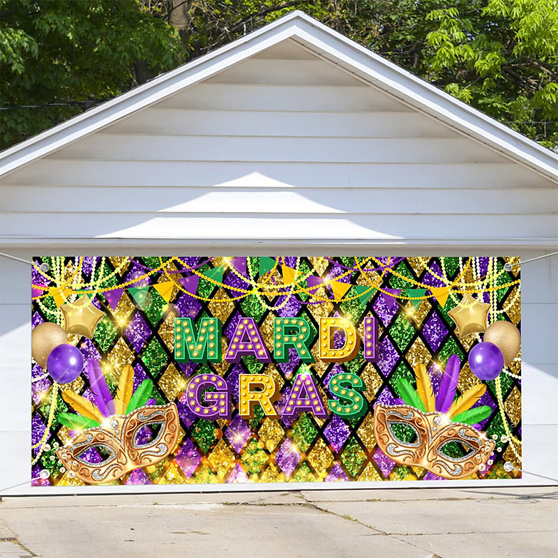 Mardi Gras Garage Door Cover Large Hanging Backdrop Mask Feather Luxury Colorful 3D Party Outdoor Shooting Backgrounds Front Door Masquerade Home Decor