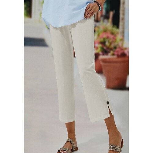 Per donna Pantaloni di lino Chino Simillino Tasche laterali Spacco cascante Polpaccio Nero