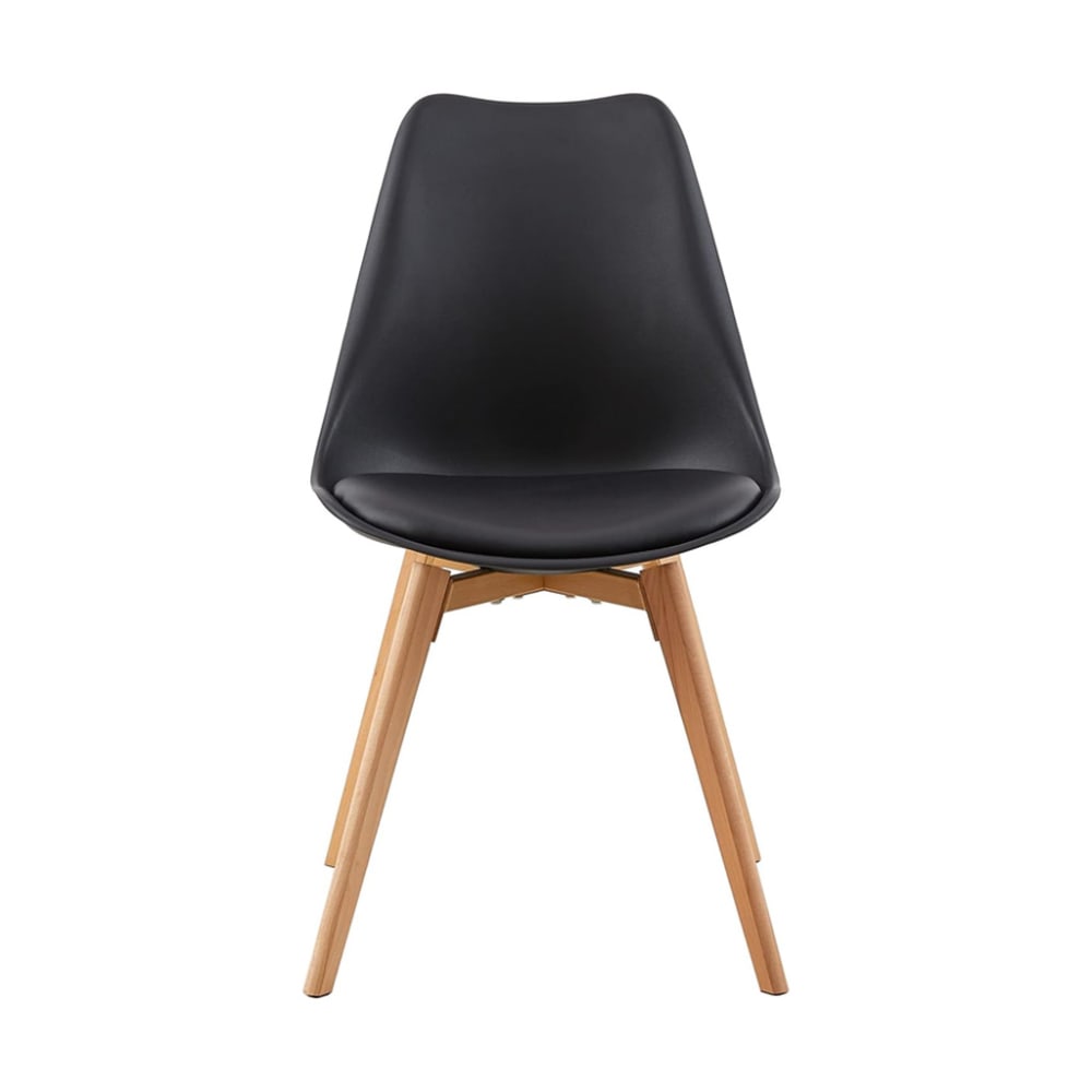 Set di 4 sedie in polipropilene nero, gambe in legno, 47x52x82 cm