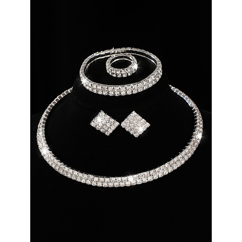 Women's 4-Piece Rhinestone Jewelry Set - Sparkly Necklace, Earrings, Bracelet and Ring for Ballroom Dance, Cocktail Party and Formal Events