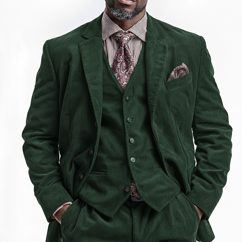 Men's Business Party Corduroy Suit Notch Lapel Black Burgundy Party Casual Striped Tailored Fit 3 Piece Single Breasted Three-buttons