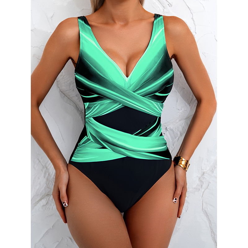 Women's One Piece Swimsuit Slimming Ruched Monokini Briefs Tummy Control High Waist Slim Elegant Vacation Ombre Graphic V Neck Sleeveless Bathing Suits