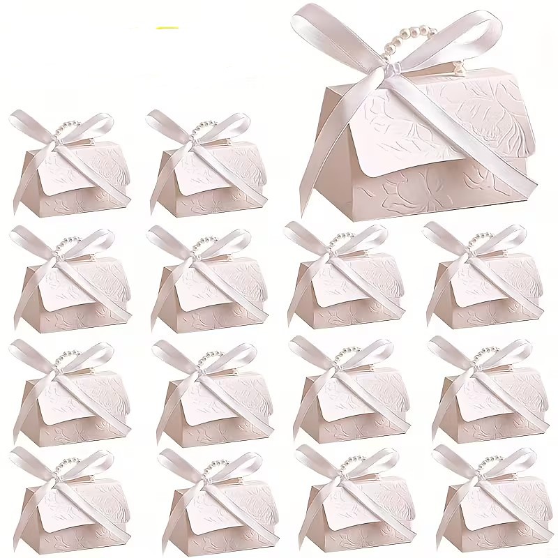 15PCS Valentine's Day Gift Boxes with Pink White Pearl Handles – Stylish Elegant Floral Design, Portable Paper Gift Bags, Perfect for Valentine's, Weddings, Birthdays Party Favors