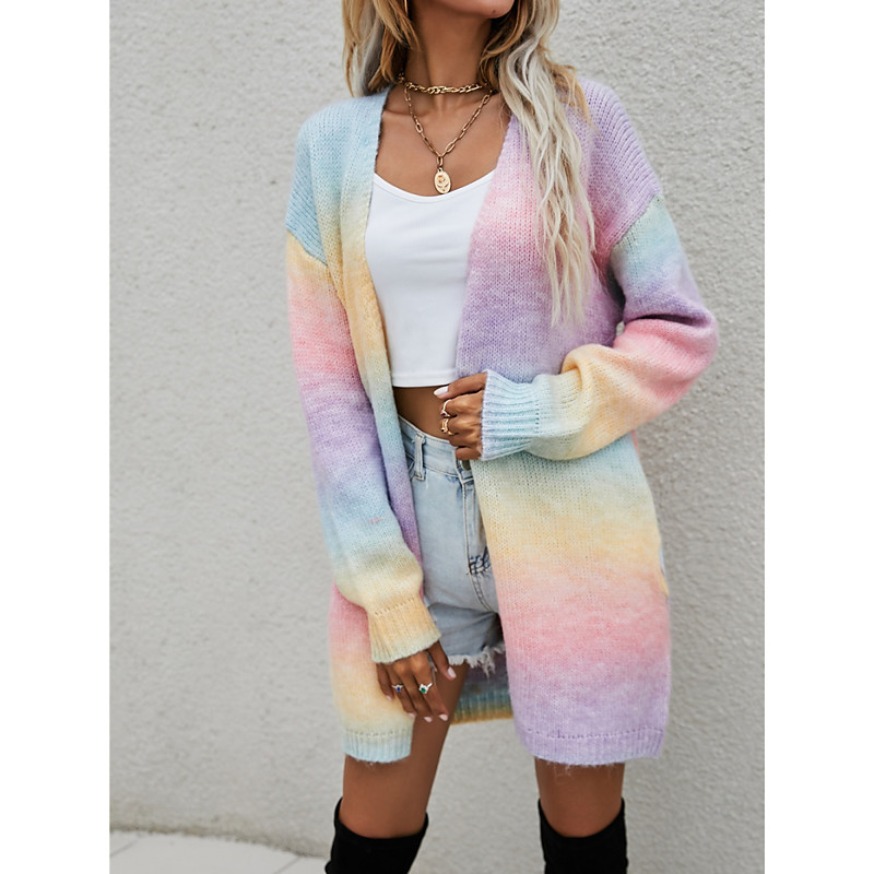 Women's Sweater Cardigan Elegant Fashion Streetwear Color Gradient Open Front Pocket Knitted Print Long Sleeve Regular Tops Knit Outdoor Daily Weekend Yellow Pink Spring Fall
