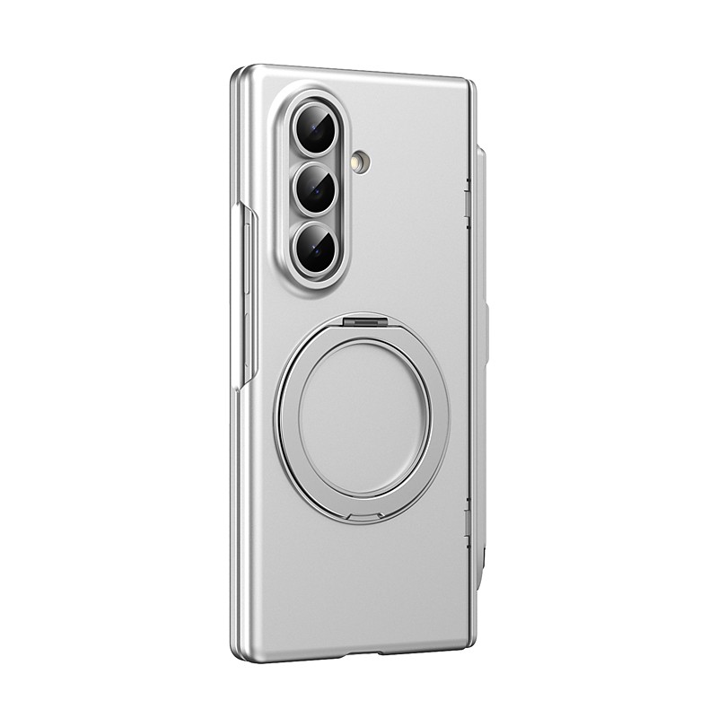Phone Case For Samsung Galaxy Z Fold 6 Z Fold 5 Z Fold 4 Z Fold 3 Back Cover with Stand Holder with Screen Protector Magnetic Solid Color PC