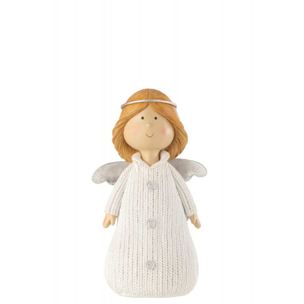 Angelo di Natale in resina bianco 17x12x29 cm