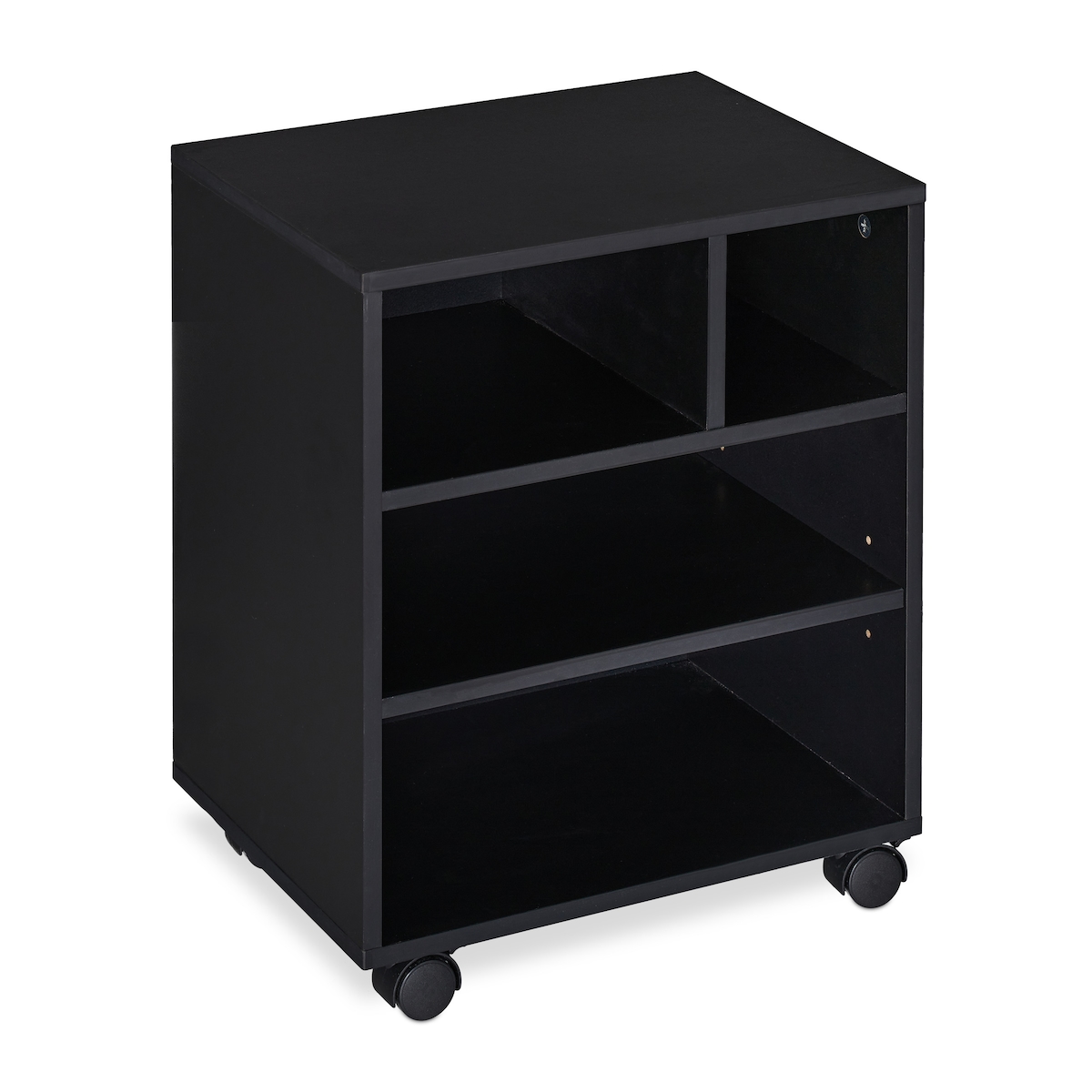 Relaxdays Rollcontainer, 4 offene Fächer, Büro & Home Office, mit Rollen, Büroschrank, HxBxT: 49 x 40 x 30 cm, schwarz