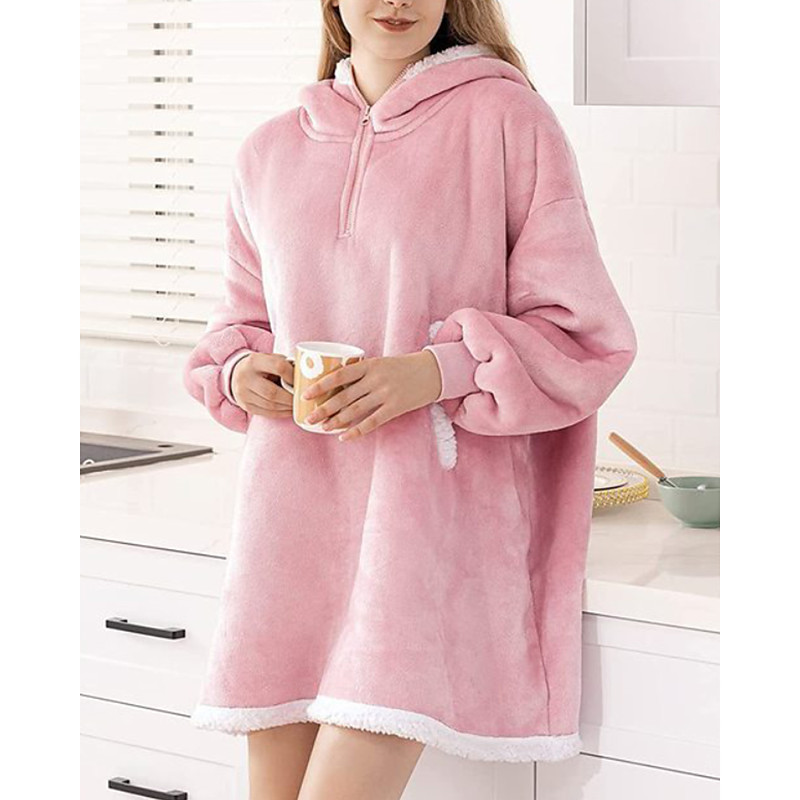 Women's Pajamas Loungewear Robe Nightgown Flannel Warm Fashion Wearable Blanket Hoodie Pure Color Drawstring Dress Home Long Sleeve V Neck Black Pink Wine Purple Dark Blue Fall Winter Loose Fit
