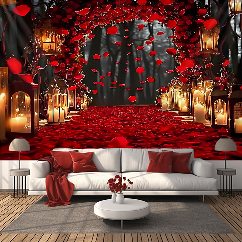 Valentine's Day Tapestry Banners Blanket Rose Love Heart Cute Romantic 3D Party Living Room Shooting Backgrounds Marriage Proposal Decoration Home Decor