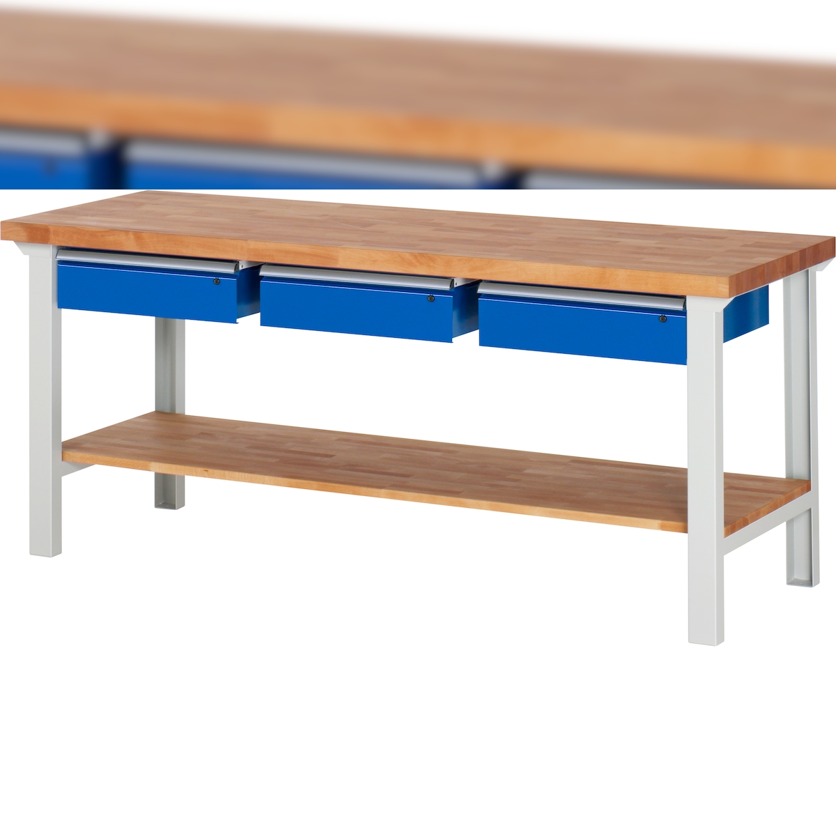 PROREGAL Werkbank Serie 7000 - Modell 7126 | HxBxT 84x200x70cm | 3x Schublade | Schubladenmaße 1x60 + 1x120 + 1x180mm