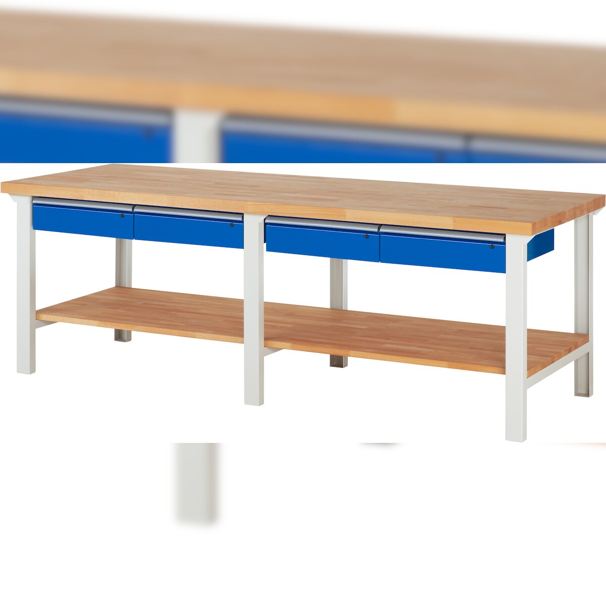 PROREGAL Werkbank Serie 7000 - Modell 7002 | HxBxT 84x250x90cm | 4x Schublade + Ablageboden | Schubladenmaße 4x150mm