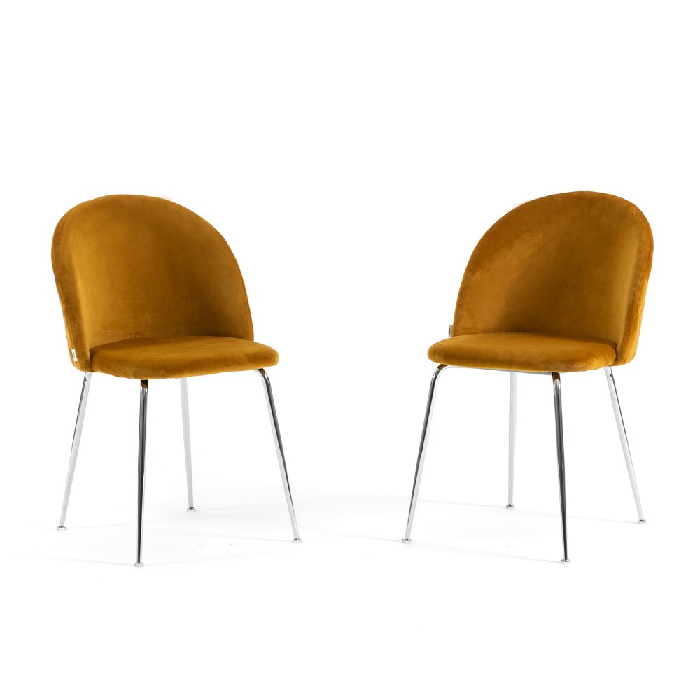 RATTATAN Set aus 2 Innenstühlen aus Samt, gepolstert, mit Metallbeinen, elegantes Design für Esszimmer, Bar und Restaurant – Sara – Senf/Silber