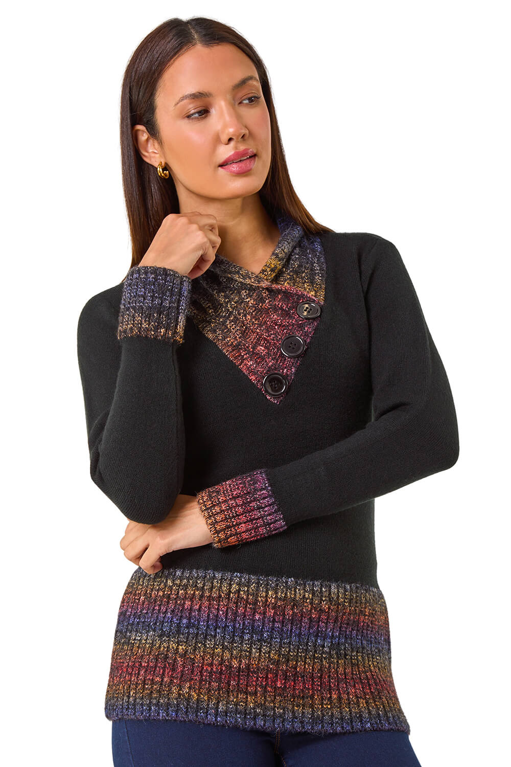 Roman Womens Graduated Faux Pearl Cable Knit Jumper - Black - Size 14 UK | Roman Sale | Discount Designer Brands