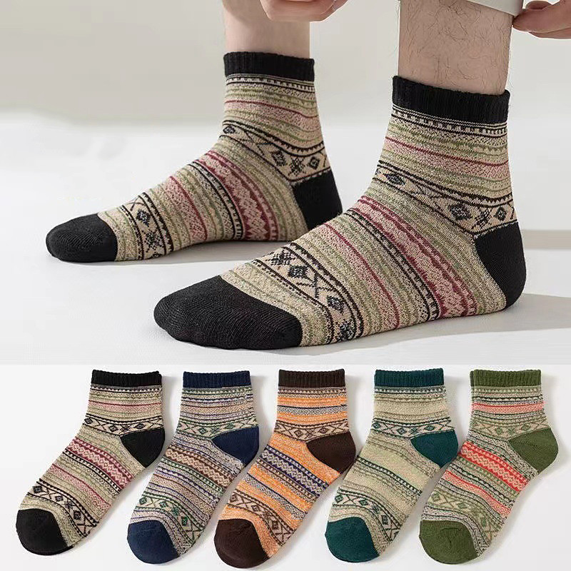 Men's 5 Pairs Multi Packs Socks Crew Socks Casual Socks Brown Color Stripes Daily Vacation Medium Spring Fall Fashion Casual