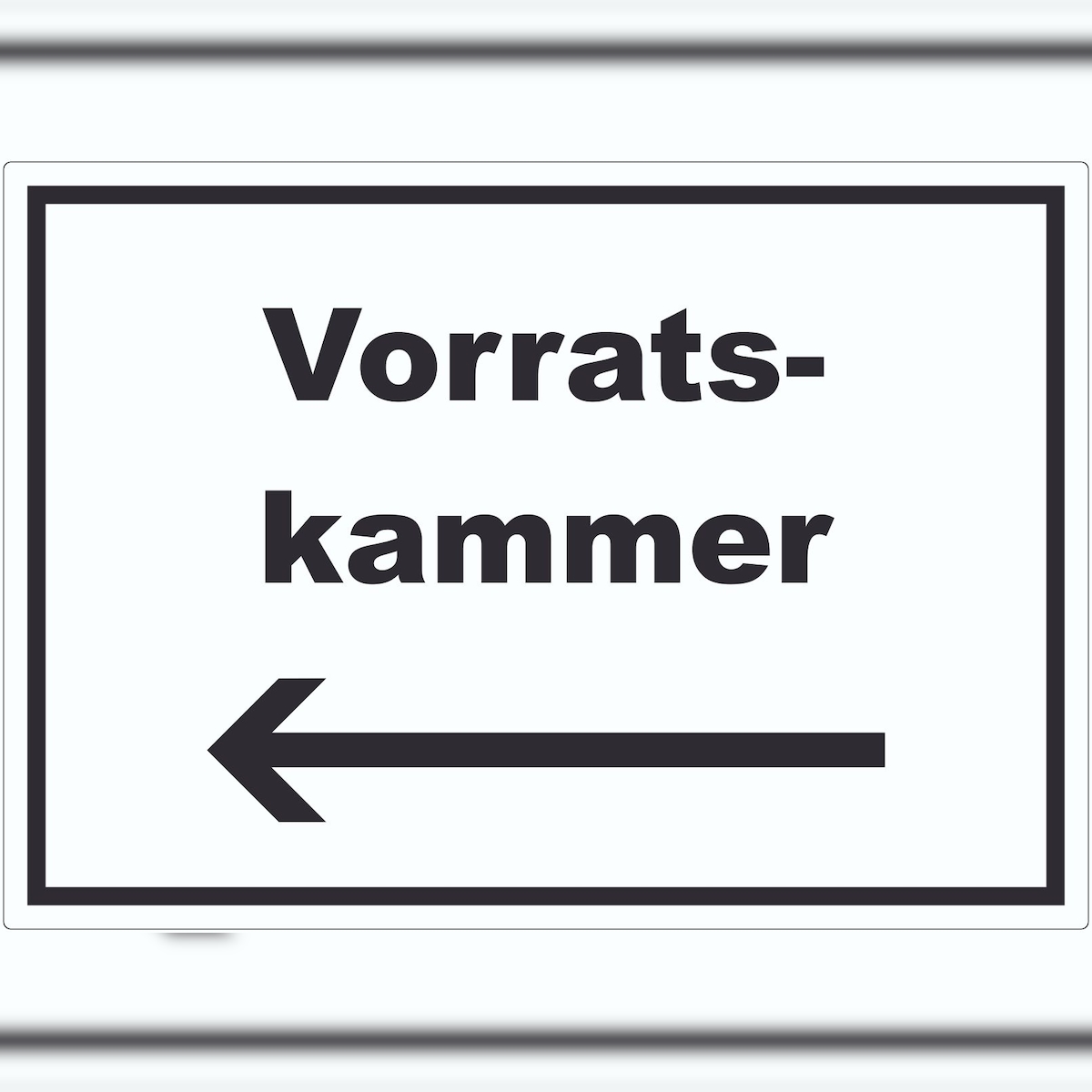 HB-Druck Vorratskammer Schild mit Text und Richtungspfeil rechts Pantry Reserve hochkant A6 (105x148mm)