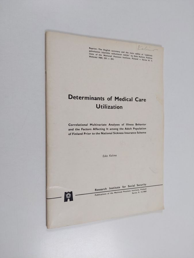 Esko Kalimo : Determinants of medical care utilization : Correlational multivariate analyses of illness behavior and the factors affecting it ...