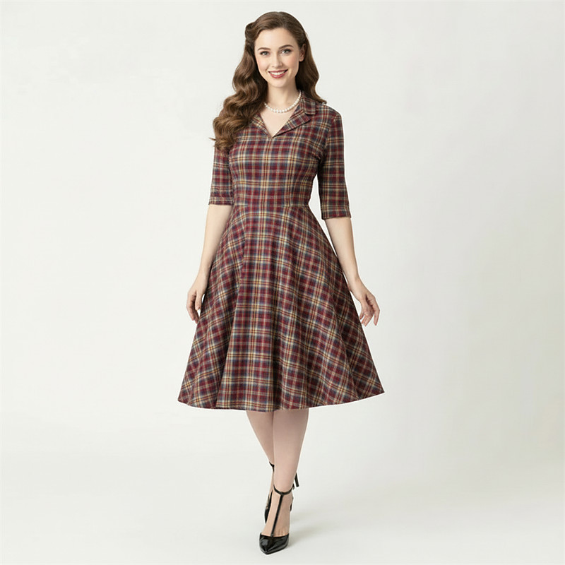 Rockabilly Midi A Line Dress Short Sleeves Fit Flare Fancy Dress Women's Carnival Valentine's Day Casual Homecoming Retro Theme Party Adults' Dress Spring
